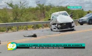 Carreta e carro de passeio se envolvem em acidente na BR 304 em Assú nesta terça-feira