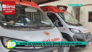 Quase 200 pessoas de Assú deram entrada no HRTM vítimas de acidentes de trânsito de janeiro a outubro de 2025